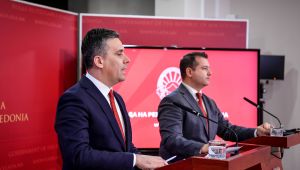 Konferenca e rregullt për shtyp e zëdhënësve të Qeverisë së Republikës së Maqedonisë, Boshnjakovski dhe Hoxha