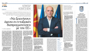 Kovaçevski për “To Vima”: Negociatat për anëtarësim me BE duhet të fillojnë menjëherë