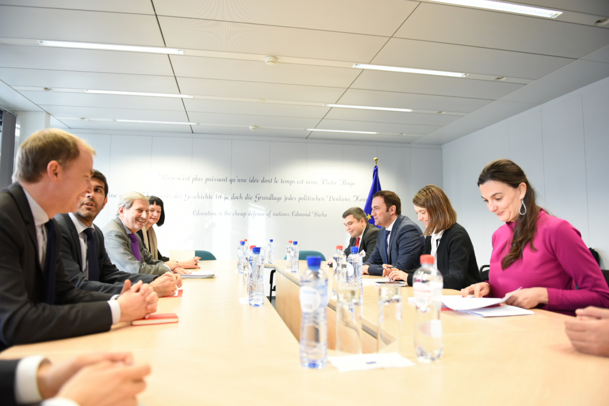 Zëvendëskryetari i Qeverisë për Çështje Evropiane Bujar Osmani, në kuadër të vizitës së tij në Bruksel, mbajti takim pune me Eurokomisionerin për Zgjerim dhe Politikë Fqinjësore, Johanes Han, ku brifoi për progresin e vendit në fushën e implementimit të detyrimeve nga procesi i integrimeve evropiane.