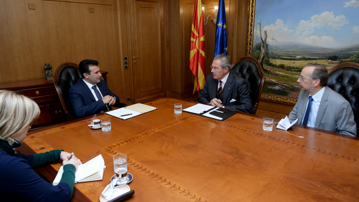 Претседателот на Владата на Република Македонија Зоран Заев, денеска се сретна со шефот на Мисијата на ОБСЕ во Скопје, амбасадорот Клеменс Која, со кого разговараа за актуелната политичка ситуација, истакнувајќи ја важноста на улогата на Мисијата на ОБСЕ во поддршка на функционирањето на правната држава и посветеноста на реформскиот процес.
