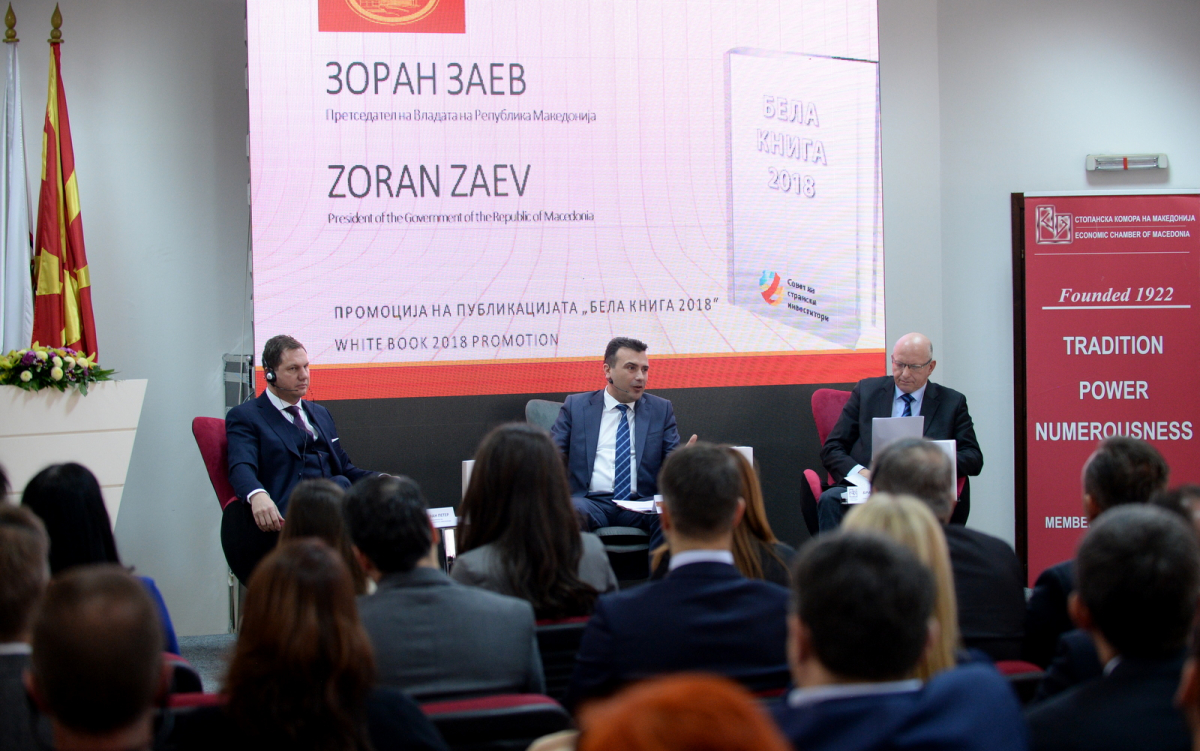 Kryetari i Qeverisë së Republikës së Maqedonisë, Zoran Zaev sot mori pjesë në promovimin e “Librit të Bardhë 2018” me organizim të Këshillit të investitorëve të huaj, pranë Odës Ekonomike të Maqedonisë.