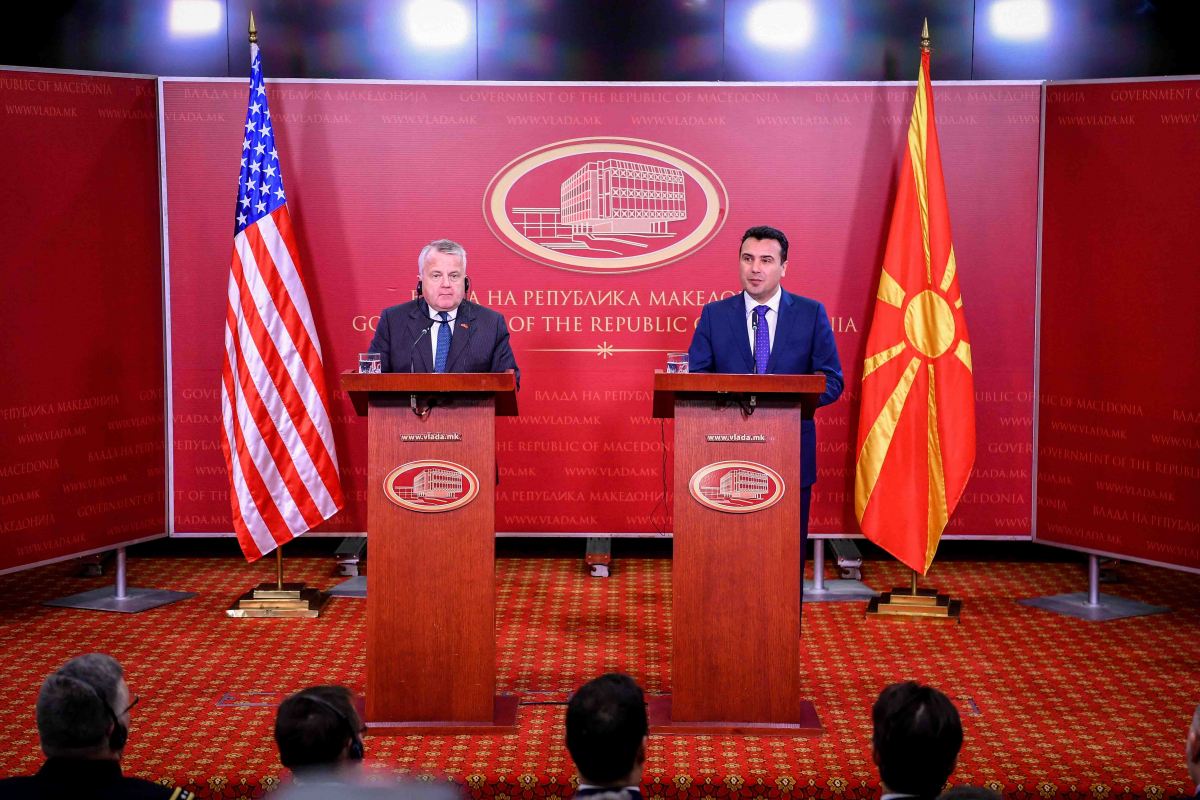 Unë me krenari e mbështes këtë, SHBA me krenari e mbështet këtë. Ne e mbështeteshim këtë, nuk nxisim asgjë. Këto vendime u sollën nën udhëheqjen e guximshme të këtij kryeministri. Nuk është fshehtësi që qeveria Ruse është kundër anëtarësimit të Maqedonisë në NATO dhe lirshëm mund të tregoj që Rusia do të bëjë çmos që është në interesin e saj, të shkel atë që Qeveria dhe qytetarët e Maqedonisë e kanë vërtetuar si interes më të mirë të këtij vendi. Megjithatë SHBA-të e përkrahin Maqedoninë. Nuk do të jetë befasi për askënd këtu nëse them se Rusia i kundërvihet rrugës që Maqedonia ka zgjedhur dhe që do të përdor të gjitha mjetet në dispozicion që të shkel atë. Këtë e shohim edhe në pjesët tjera të Evropës, këtë e pamë edhe gjatë kohës së zgjedhjeve në SHBA në vitin 2016. Domethënë ne nuk jemi të befasuar, por edhe njëherë dua të theksoj se SHBA-të janë ata që mbështesin Maqedoninë, e mbështetshin qeverinë e saj të guximshme dhe qytetarët në Maqedoni dhe do të ju ndihmojnë edhe të tjerëve të cilët janë të bashkuar në mbështetjen e kësaj qeverie që ti kundërvihet dhe të zbuloj ndikimin negativ të Rusisë në Maqedoni, në pjesët tjera të rajonit dhe Evropës, dhe çdo kund ku bashkohen që të shkelin proceset legjitime të qeverive që sjellin vendime në interes të qytetarëve të tyre, asht siç bënë Maqedonia. Do ti mbështesim ato Qeveri dhe do të bëjmë gjithçka që është në mundësitë tona që ti kundërvihemi këtij ndikimi të dëmshëm dhe ta nxjerrim atë në dritë.