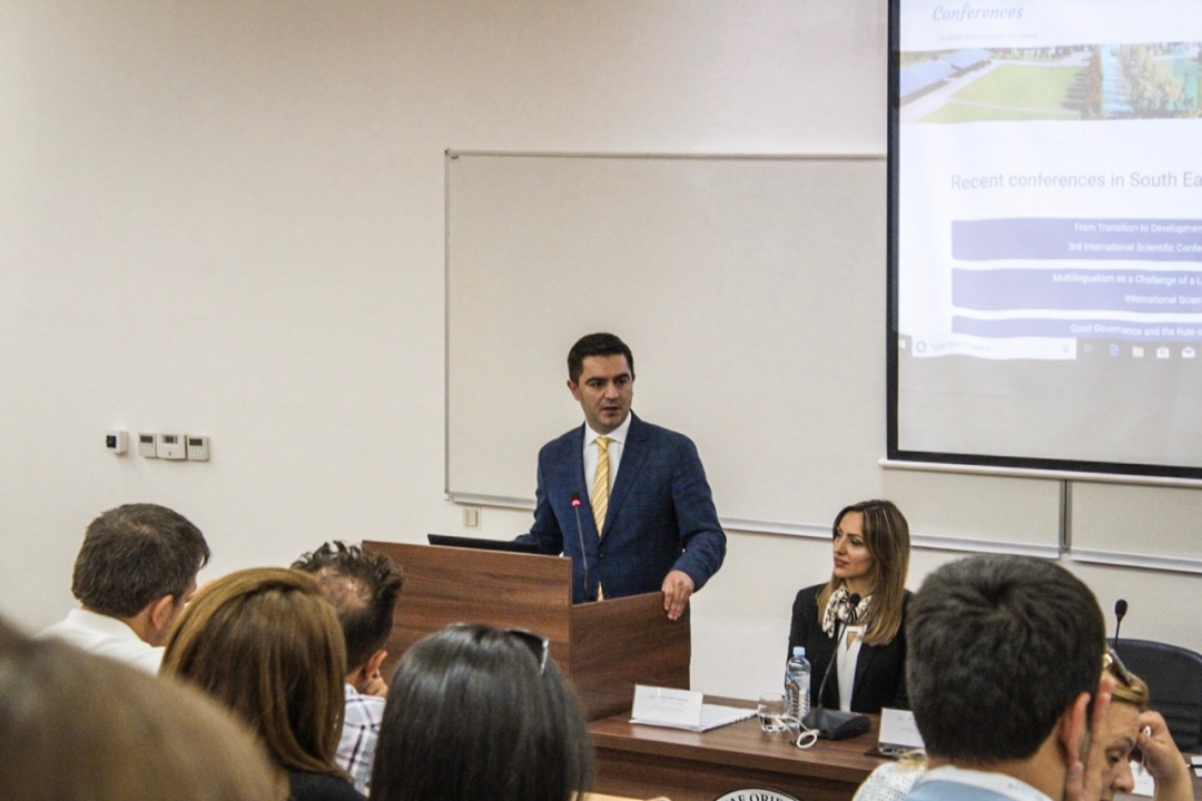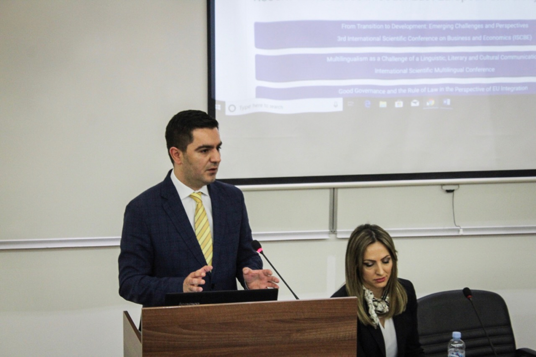 Министерот за економија Крешник Бектеши учествуваше на 3. Меѓународна научна конференција за бизнис и економија, насловена „Од транзиција до развој: Предизвици и перспективи“, која се одржа на Универзитетот на ЈИЕ во Скопје.