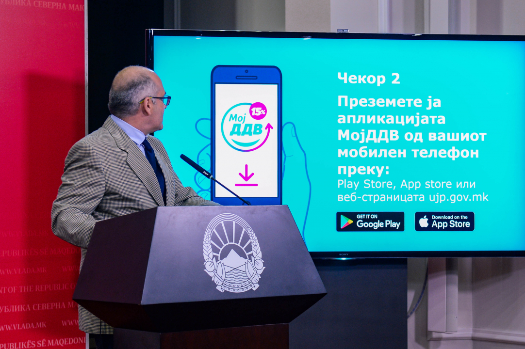 На прес-конференцијата во Владата на РСМ денеска беше презентирана и апликацијата „Мој ДДВ” којашто граѓаните ќе ја користат од 1 јули, и со која ќе се скенираат валидните фискални сметки. Апликацијата низ 5 едноставни чекори ќе биде алатката преку која граѓаните сега за прв пат ќе се стекнат со можност да вратат дел од ДДВ, и на тој начин да станат партнери во борбата против сивата економија.