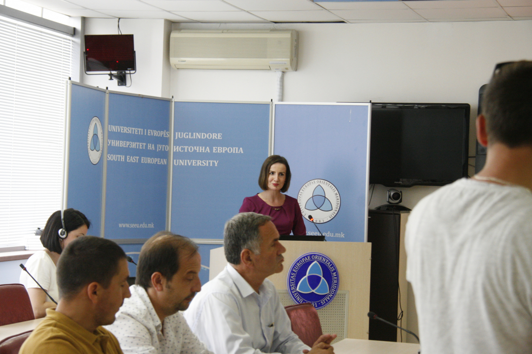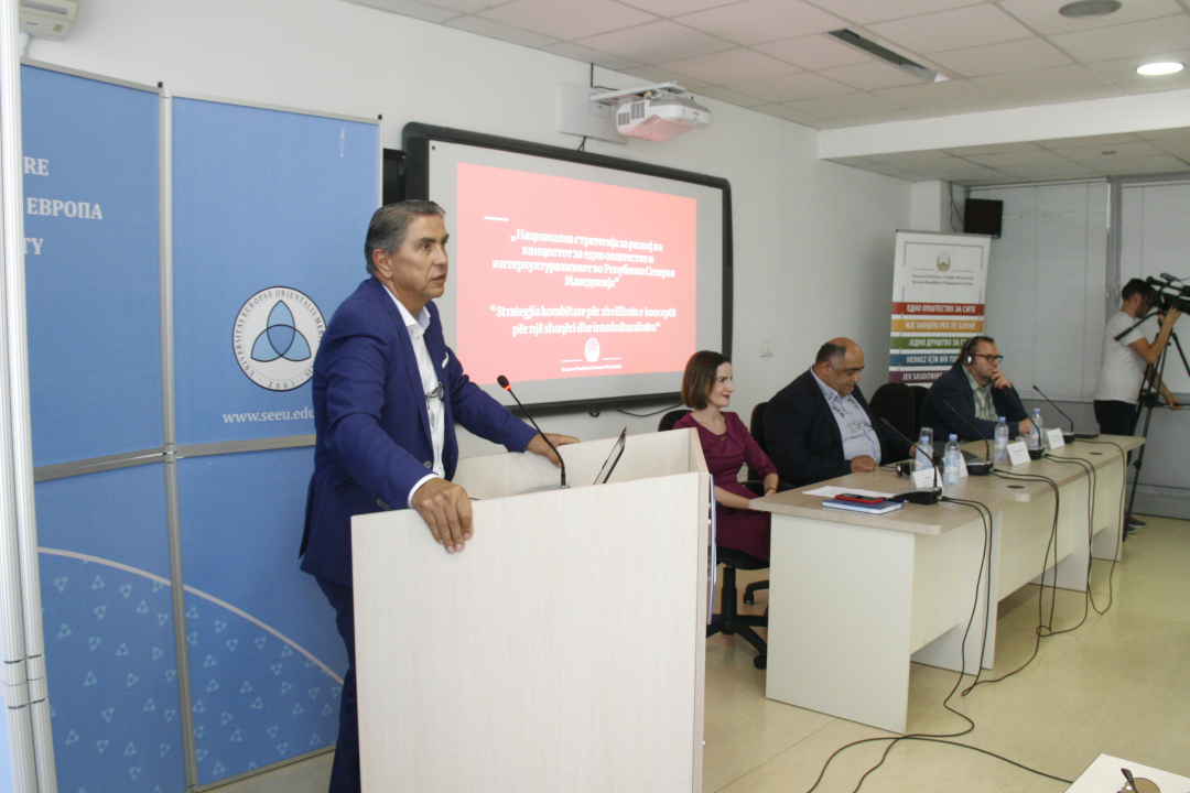 Ректорот на УЈИЕ, Абдулменаф Беџети во својство на домаќин истакна дека е чест што концептот за едно општество и интеркултурализам, како висок приоритет на Владата се презентира и во УЈИЕ, како автентична тема што е карактеристична и за самиот Универзитет.