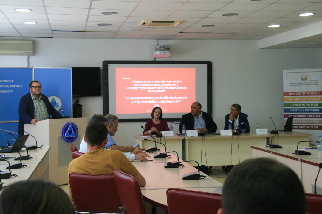 Нацрт-текстот на „Националната стратегија за развој на концептот за едно општество и интеркултурализмот во Република Северна Македонија“, за кој, вчера се одржа завршната од серијата јавни дискусии по градовите, денеска беше претставен и на Универзитетот на Југоисточна Европа (УЈИЕ) во Тетово, на взаемна иницијатива и интерес за претставување на Стратегијата пред академската заедница на оваа образовна институција.