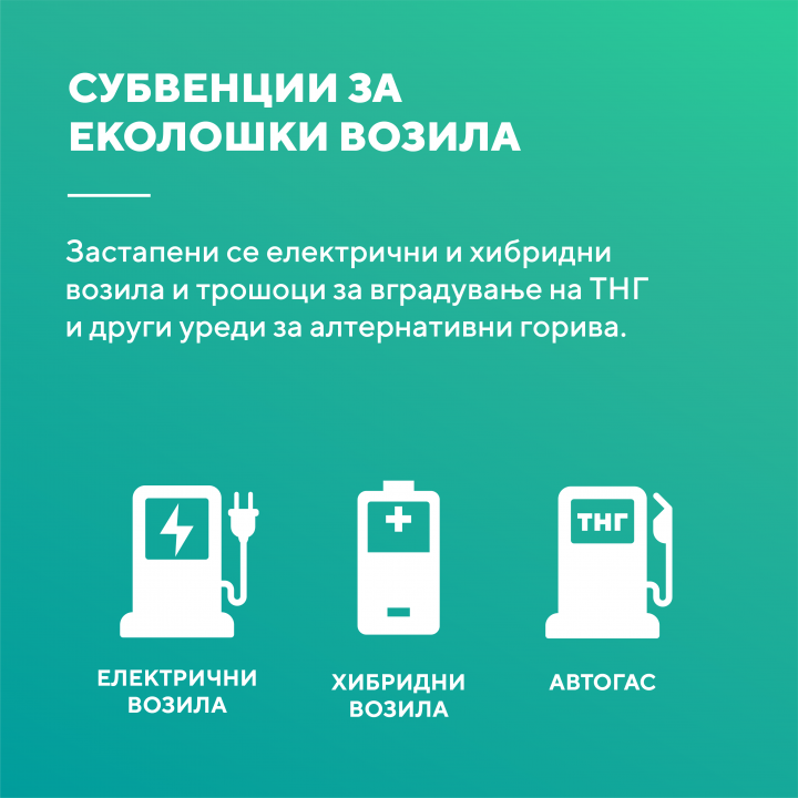 „Со мерката за субвенционирање на трошоци за вградување на уред за погон на ТНГ, метан или друг вид на алтернативно гориво во постоечките возила се предвидува да се субвенцинира 50% од цената на трошоците за набавка и вградување на уредот, но не повеќе од 300 евра во денарска противвредност за возило и се предвидува да бидат опфатени над 1.200 возила на годишно ниво. Мерката за субвенционирање на купување на нови возила со одјава на старо возило има за цел да се зголеми увозот на нови возила во однос на половните и значително ќе се забрза обновата на возниот парк, што значително ќе се влијае на намалувањето на загадувањето на амбиенталниот воздухот. Се предвидува да се субвенции од 2.000 - 3000 евра во денарска противвредност за набавка на ново возило, и во првата година се предвидува да бидат опфатени над 200- 500 возила“ истакна министерот Бектеши.