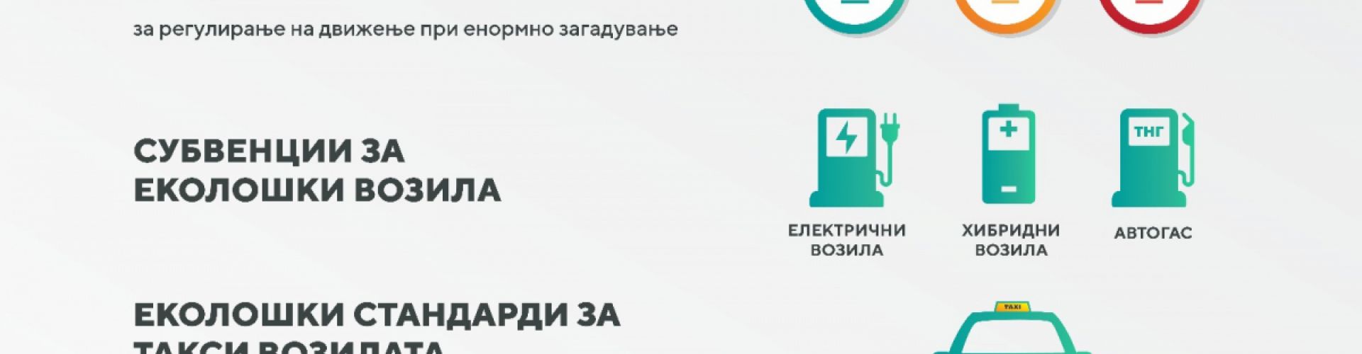 Новини во Законот за моторни возила се воведување на субвенции за вградување на уреди на течен нафтен гас или компримиран земјен гас односно метан, субвенции за купување на ново возило, ако претходно користеното се одјави. Се воведува категоризација на возилата во зависност на стандардите кои ги исполнуваат кои ќе бидат одбележани со зелена, жолта и црвена налепница, а се воведуваат и жолти регистарски таблички за таксистите и унифицирана светлечка табла за такси возилата.
