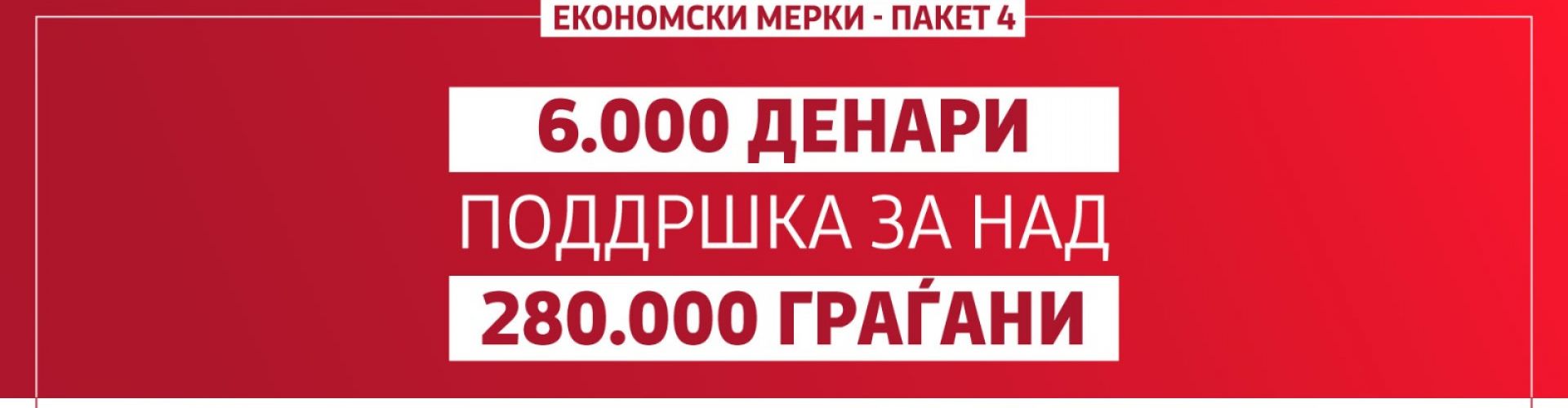 Dje dhe sot në llogaritë e qytetarëve janë paguar gjithsej 1.51 miliardë denarë, ose 24,6 milionë euro, me të cilat mbështetet grupet e prekshme të qytetarëve. Pas kompletimit të listave të personave dhe kontrollet e kryera administrative-teknike, mbi 280 mijë qytetarë në llogarinë e tyre të transaksionit do të marrin ndihmë të njëhershme financiare në vlerë prej 6.000 denarë. Me këtë masë njëkohësisht mbështetet ekonomia e përgjithshme vendore, përmes stimulimit të konsumit personal, ndërsa qytetarët mjetet do të mund ti shfrytëzojnë në çdo periudhë pa afate dhe kufizime.