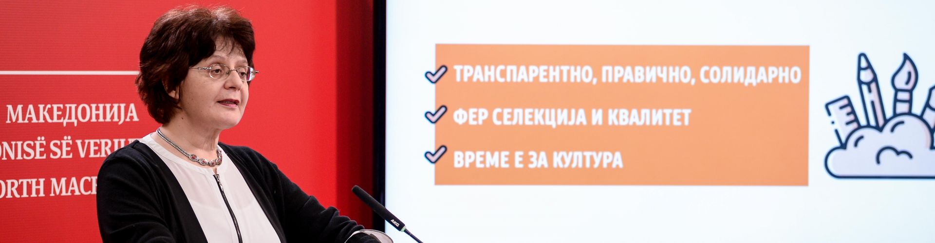 Таа ја изрази и својата убеденост дека во резултатите од програмата, културната јавност ќе го препознае напорот – за напуштање на принципот „по малку за сите“ затоа што таквиот „принцип“, како што нагласи, ја обесмислува  културата и ја убива креативноста. Ги посочи и критериумите врз основа на кои работеа стручните комисии и кажа дека акцентот е ставен врз: квалитетот на проектите, нивното значење за јавниот интерес во културата, нивната релевантност во животот на граѓаните, поддршка на автори од различни етнички заедници, стимулирање на креативни млади творци, на ранливи и маргинализирани групи, реално вреднување на трудот за да се заштити достоинството на авторот, а за прв пат после повеќе децении одобрени се солидни средства за заштитата на нашето културно наследство.