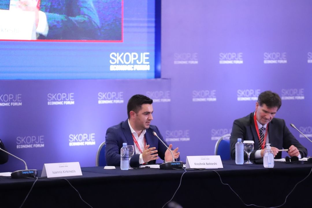 Интензивно работиме на транзиција во енергетскиот сектор. Веќе се започнати неколку поголеми проекти во изградба на капацитети од обновливи извори на енергија, а во наредниот период ќе го засилиме инвестицискиот циклус во зелена енергија. Нашата цел е до крајот на 2030 година 40% од бруто финалната потрошувачка на енергија во земјата да биде 40% од обновливи извори“ кажа министерот за економија Крешник Бектеши во своето обраќање на панел дискусијата “Инфраструктура, енергија, туризам: Двигатели на долгоречен просперитет” на Економскиот форум во Скопје.
