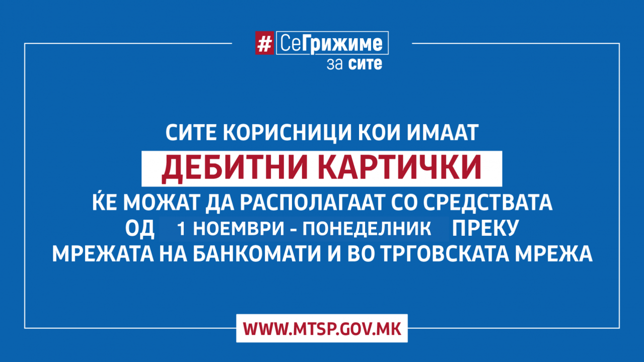 Корисниците на парични права коишто поседуваат дебитна картичка ќе можат да подигнат готовина на банкоматите на банките, да ги користат средствата за безготовински плаќања во продажната мрежа или преку електронско и мобилно банкарство од денеска, 1 ноември 2021 година.