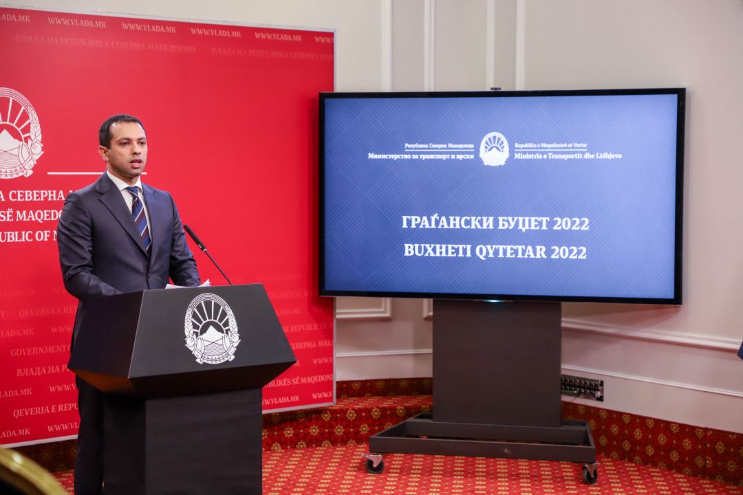 Министерот за транспорт и врски, Благој Бочварски, денеска го презентираше предлог Буџетот на Министерството за транспорт и врски за 2022 година.