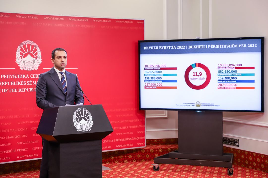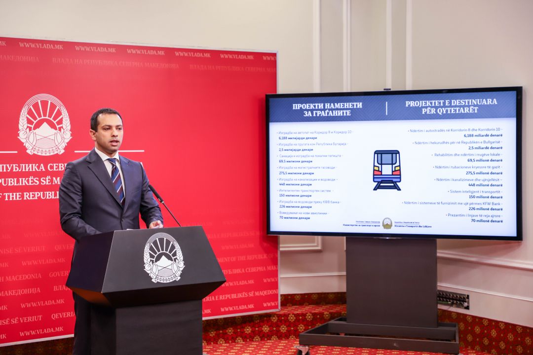 Предлог Буџетот на Министерството за транспорт и врски е проектиран на 11 милијарди и 865 милиони денари. За капитални проекти, предвидени се преку 91 процент или 10 милијарди и 885 милиони денари.
