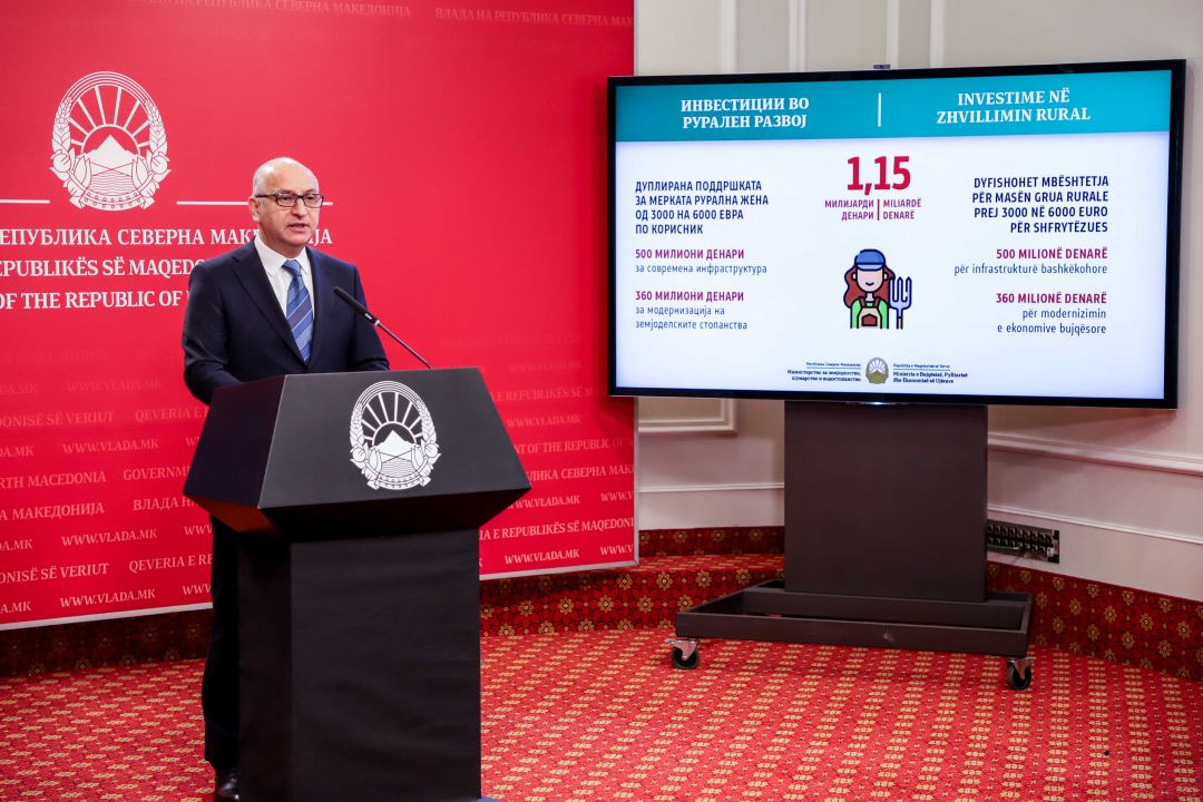 Овие средства ќе овозможат континуирано реализирање на Програмата за финансиска поддршка во руралниот развој, програма во која се инкорпорирани и популарните мерки како што се „Млад земјоделец“ и „Рурална жена“. Новина за оваа година е креирана кај мерката популарно наречена „Рурална жена“, каде износот на поддршката за жените носители на земјоделски стопанства е дуплиран и од оваа година, поддршката се зголемува од 180.000 денари на 360.000 денари.