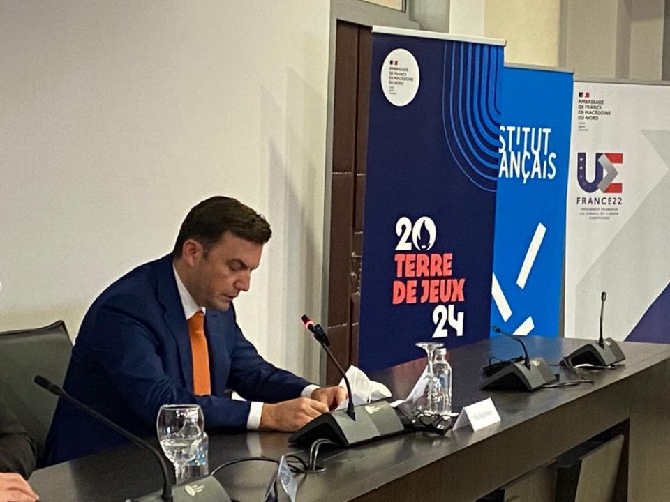 Амбасадорот ги презентираше во главни црти различните димензии на спортската дипломатија и врз основа на тоа потсети дека неговата земја е меѓу првите во светот во поглед на нејзиниот развој, нагласувајќи дека француското Претседателство со Советот на Европската унија ѝ дава големо значење на оваа тематика, преку два клучни настани, едниот се одржа овој месец во Париз, а другиот е предвиден за месец март, во Стразбур. На крајот, тој потсети на одличната соработка меѓу нашите две земји во областа на спортот, особено преку поддршката за развој на планинските спортови, што е во исто време одлична можност за унапредување и промовирање на убавото природно наследство на Северна Македонија.