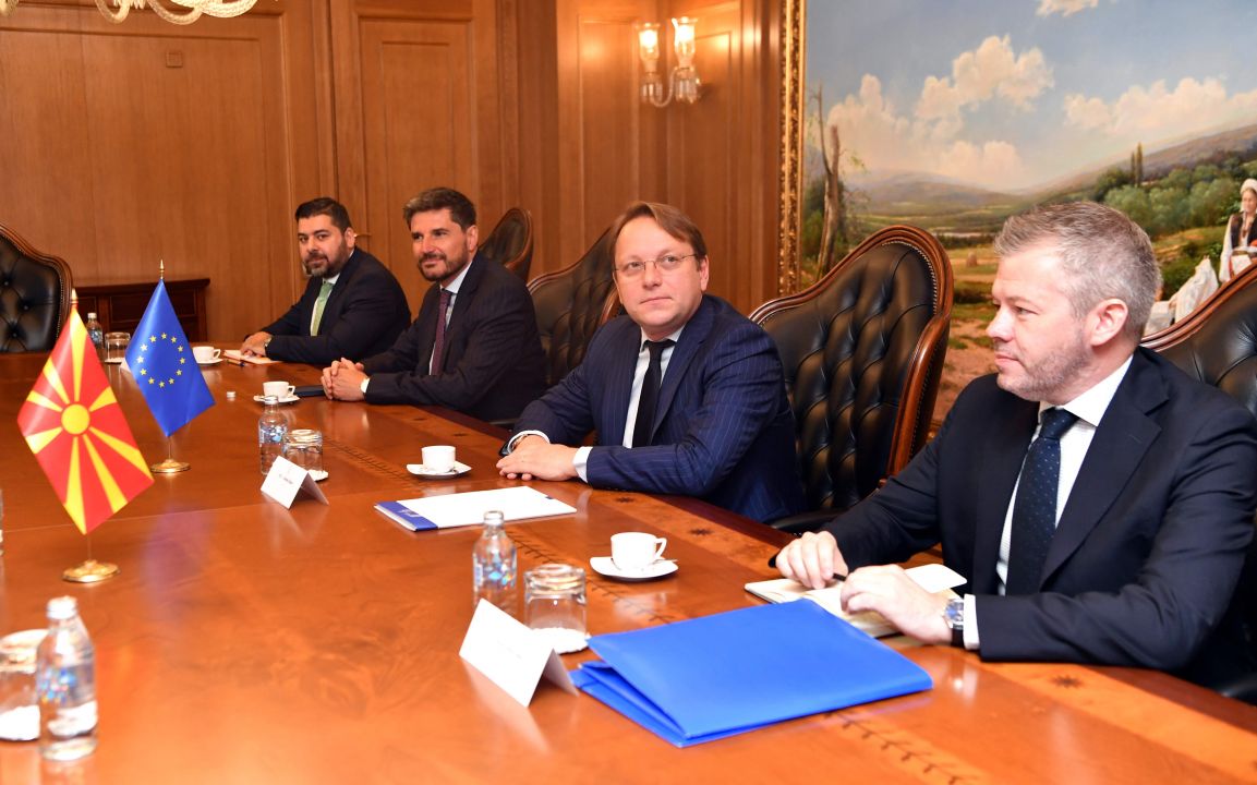 Претседателот на Владата на Република Северна Македонија, Димитар Ковачевски, придружуван од заменикот на претседателот на Владата за европски прашања, Бојан Маричиќ, се сретна со Оливер Вархеји, еврокомесар за проширување и соседска политика на ЕУ.