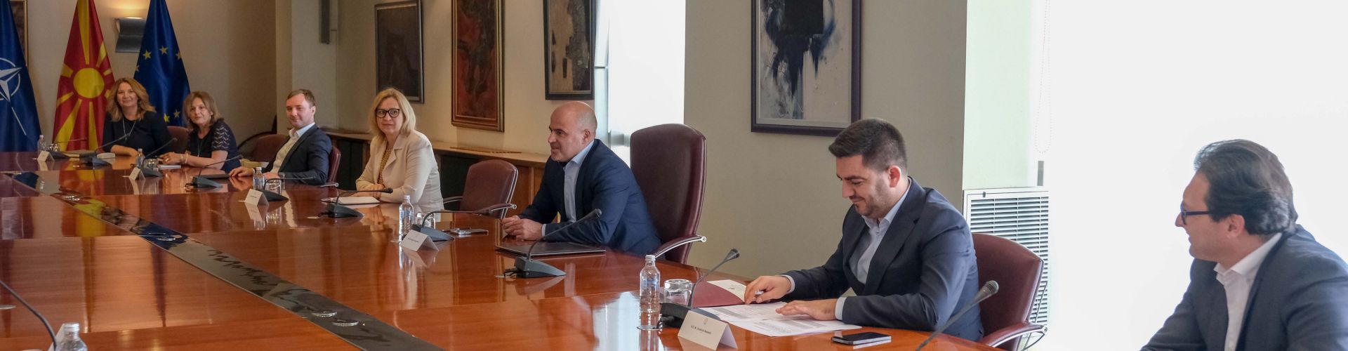Kryeministri i vendit, Dimitar Kovaçevski u takua me disa nga anëtarët e bordit të drejtorëve të organizatës “Maqedonia 2025”, Mike Zafirovski, Vasko Kronevski, Kati Iceva dhe drejtoresha ekzekutive Nikica Mojsoska Bllazhevski. Në takim morën pjesë edhe zëvendëskryeministrja përgjegjëse për politika të qeverisjes së mirë Slavica Grkovska dhe ministri i Ekonomisë Kreshnik Bekteshi.