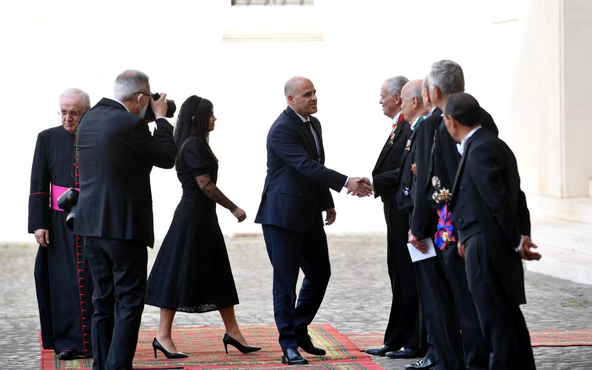 Kryeministri Kovaçevski pati takim tet-a-tet me Shenjtërinë e Tij Ppa Françeskun, pas së cilit vijoi pritja e vajzës së Kryetarit të Qeverisë, si dhe anëtarët e delegacionit, Bujar Osmani, ministër i Punëve të Jashtme, Oliver Spasovski, ministër i Punëve të Brendshme, Bisera Kostadinovska Stojçevska, ministre e Kulturës, Martin Popov, shef i Kabinetit të Kryetarit të Qeverisë, Ana Andreeva, sekretare për komunikim, marrëdhënie me publikun dhe protokoll të Kryeministrit, Darijan Sotirovski, drejtor i Komisionit për marrëdhënie me bashkësitë fetare, Nikolla Jankullovski, rektor i universiteti Sh. Kirili dhe Metodi, Pimen Ilievski, mitropoliti i KOM-AO, Josif Todorovski, mitropoliti i KOM-AO dhe Zoran Stojanov, dekan i Dioqezës së Kishës Katolike të Strumicës dhe Marija Efremova, ambasadore e Republikës së Maqedonisë së Veriut në Vatikan.
