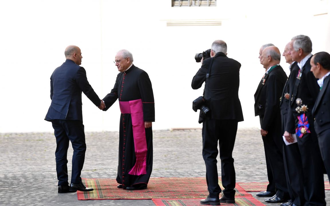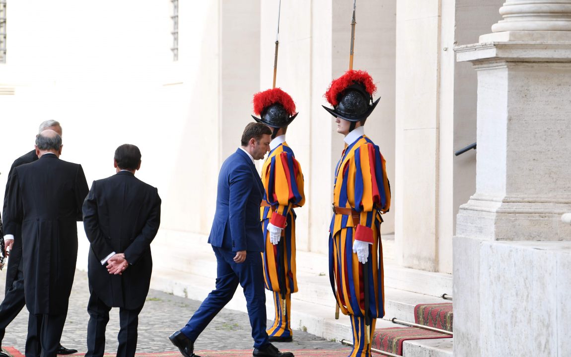 Kryeministri Dimitar Kovaçevski i shoqëruar nga vajza e tij Tamara Kovaçevska dhe delegacioni i Qeverisë së Republikës së Maqedonisë së Veriut, i cili ndodhet në një vizitë dyditore në Romë dhe në Vatikan në kuadër të festimeve tradicionale për nder të 24 Majit. Dita e iluministëve mbarësllav, sot u prit nga Shenjtëria e Tij Papa Françesku.