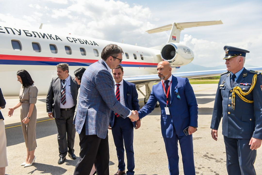 Presidenti i Republikës së Serbisë, Aleksandar Vuçiq dhe Kryetari i Qeverisë së Republikës së Malit të Zi, Dritan Abazoviq në Aeroportin e Ohrit u pritën nga ministrja e Kulturës, Bisera Kostadinovska – Stojçevska.