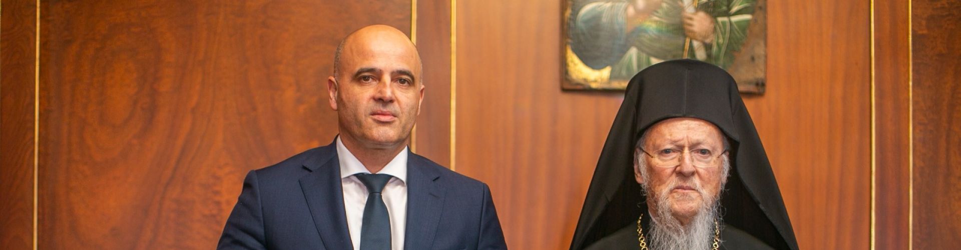 Në kuadër të programit të vizitës në Patriarkanën Ekumenike, u organizua pritje për anëtarët e delegacionit dhe takimi tet-a-tet i Kryeministrit Kovaçevski me Patriarkun Ekumenik Vartolomej.