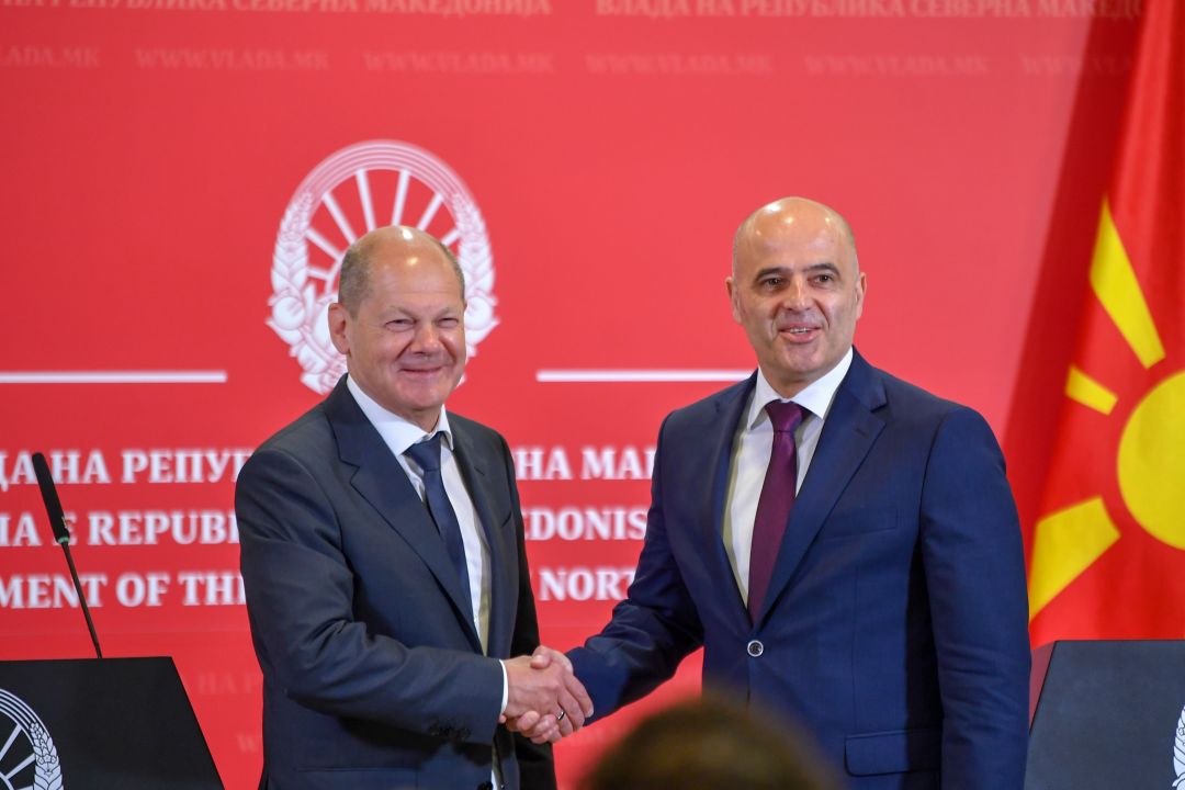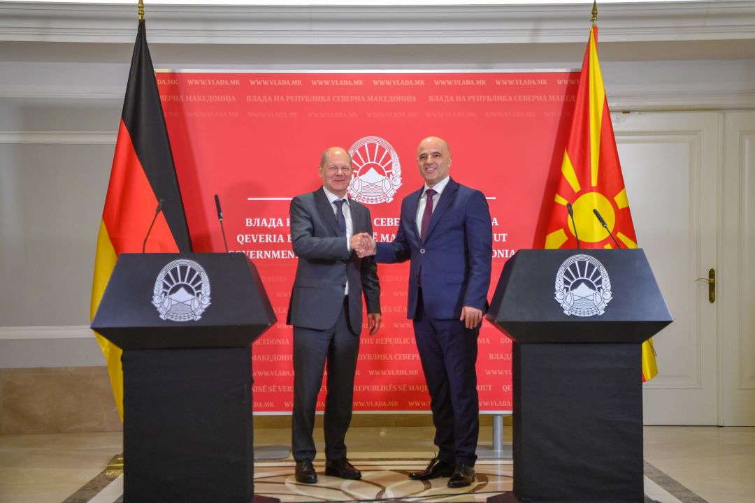 “Vizita e kancelarit Sholc pikërisht në prag të atij Samiti është shenjë e fortë e mbështetjes për kriteret e përmbushura të Maqedonisë së Veriut për fillim të pakushtëzuar të negociatave për anëtarësim në Bashkimin Evropian. Në këtë rast, një nga qëllimet e përbashkëta të Maqedonisë së Veriut dhe Republikës Federale të Gjermanisë është që vendi ynë të jetë anëtar i BE-së”, tha Kovaçevski në fjalimin e tij para gazetarëve të vendit dhe të huaj.