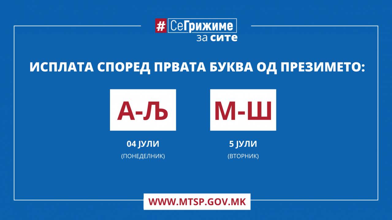 · 04.07.2022– А, Б, В, Г, Д, Ѓ, Е, Ж, З, Ѕ; И, Ј, К, Л, Љ