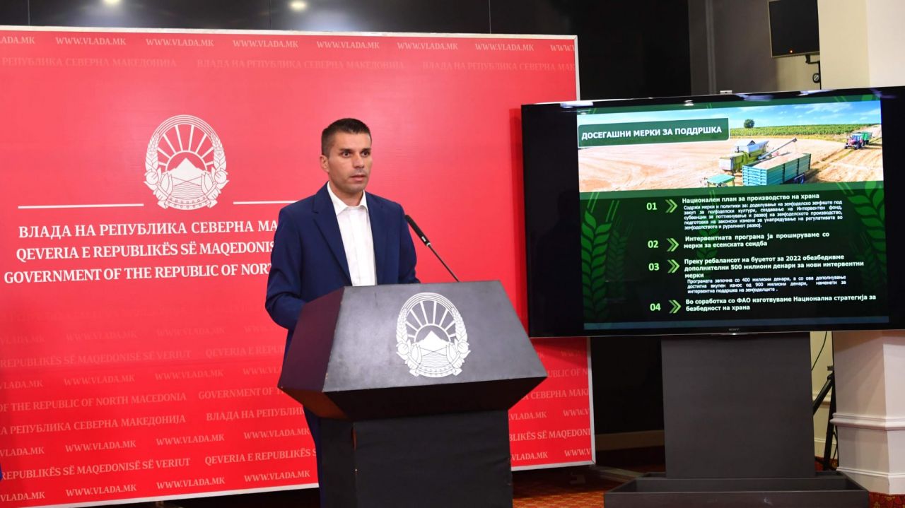 Со усвоениот сет мерки, со интервентниот фонд и со „Националниот план за производство на храна“, даваме силна поддршка на земјоделците и на граѓаните и овозможуваме навремено снабдување со основните суровини за производство на храна, со ѓубриво за сеидба и прихрана, семенски материјал и „зелена нафта“. Целта е со оваа поддршка да се справиме со светската криза, но и да станеме увозно независни со достапна и поевтина храна држава.