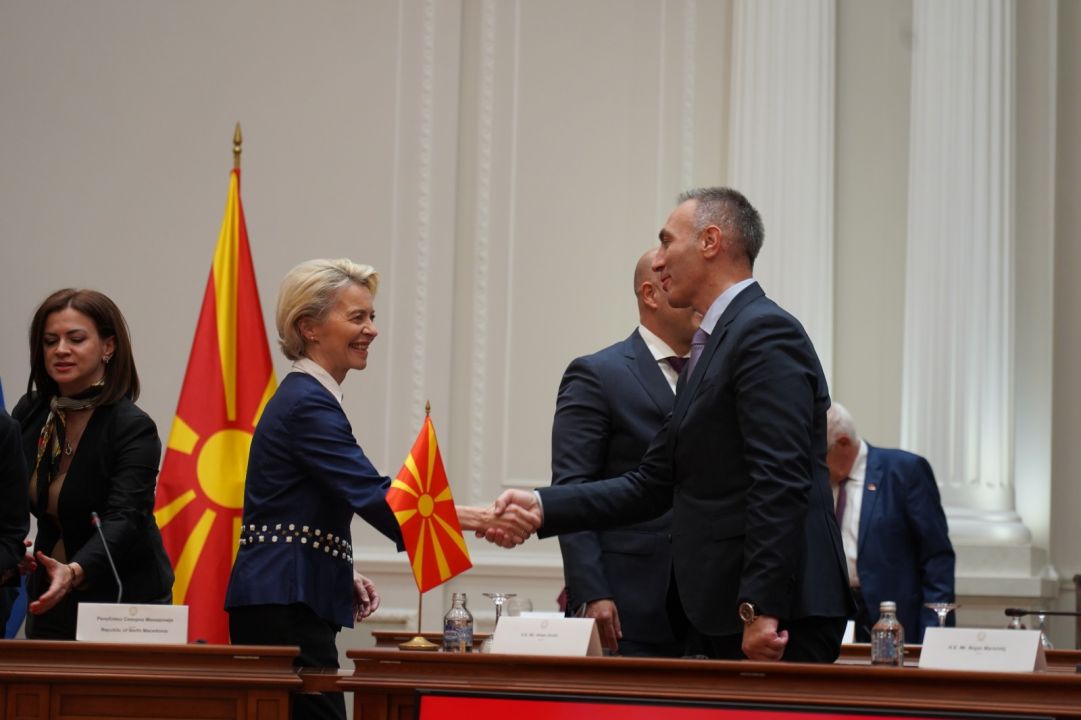 Kryeministri Kovaçevski u falënderua për tërë mbështetjen e mëparshme evropiane në zhvillimin demokratik të vendit tonë, që nga pavarësia e deri më sot, dhe veçanërisht për angazhimin personal të Kryetares së Komisionit Evropian, Fon der Lajen, në fillimin e bisedimeve të Maqedonisë së Veriut me Unionin, pas 17 vitesh nga marrja e statusit kandidat.