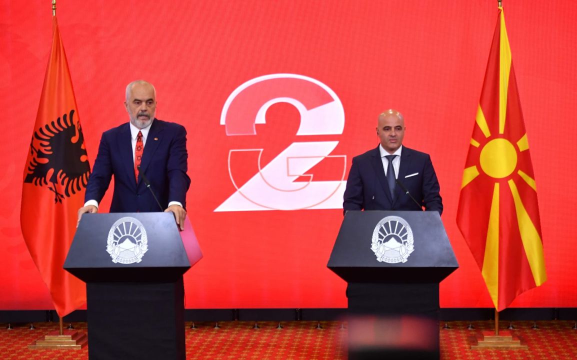 Kryetari i Qeverisë së Republikës së Maqedonisë së Veriut, Dimitar Kovaçevski dhe Kryetari i Qeverisë së Republikës së Shqipërisë, Edi Rama, pas mbledhjes ndërqeveritare mbajtën konferencë të përbashkët për shtyp.