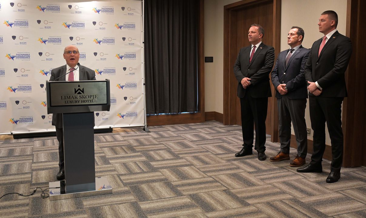 Дозволете да ја истакнам важноста што Министерството за внатрешни работи на Република Северна Македонија ја придава на меѓународната соработка, на стратешко и на оперативно ниво во менаџирањето на миграциските текови. Во оваа насока горди сме што имаме повеќе проекти што се реализираат токму со поддршка или во соработка со ИОМ, со агенциите на Обединетите нации, и со други партнери од меѓународната заедница.