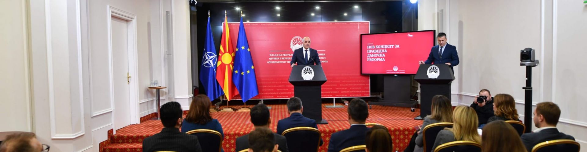 Премиерот Димитар Ковачевски и министерот за финансии Фатмир Бесими денеска на прес-конференција го претставија новиот Концепт на даночна реформа, кој треба да воспостави нов даночен систем на кој, како што истакнаа клучна карактеристика е праведноста.