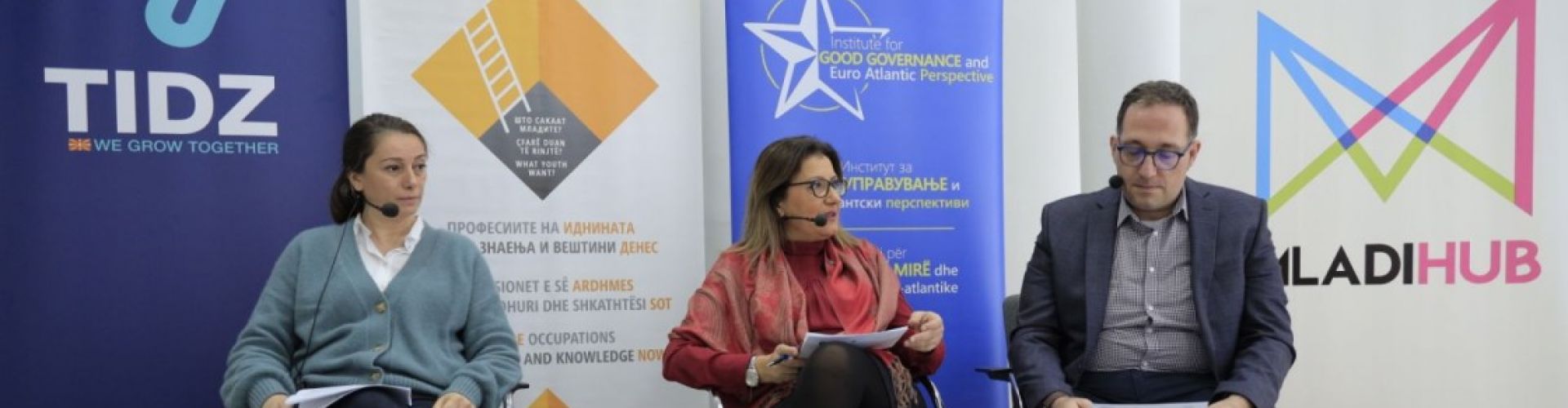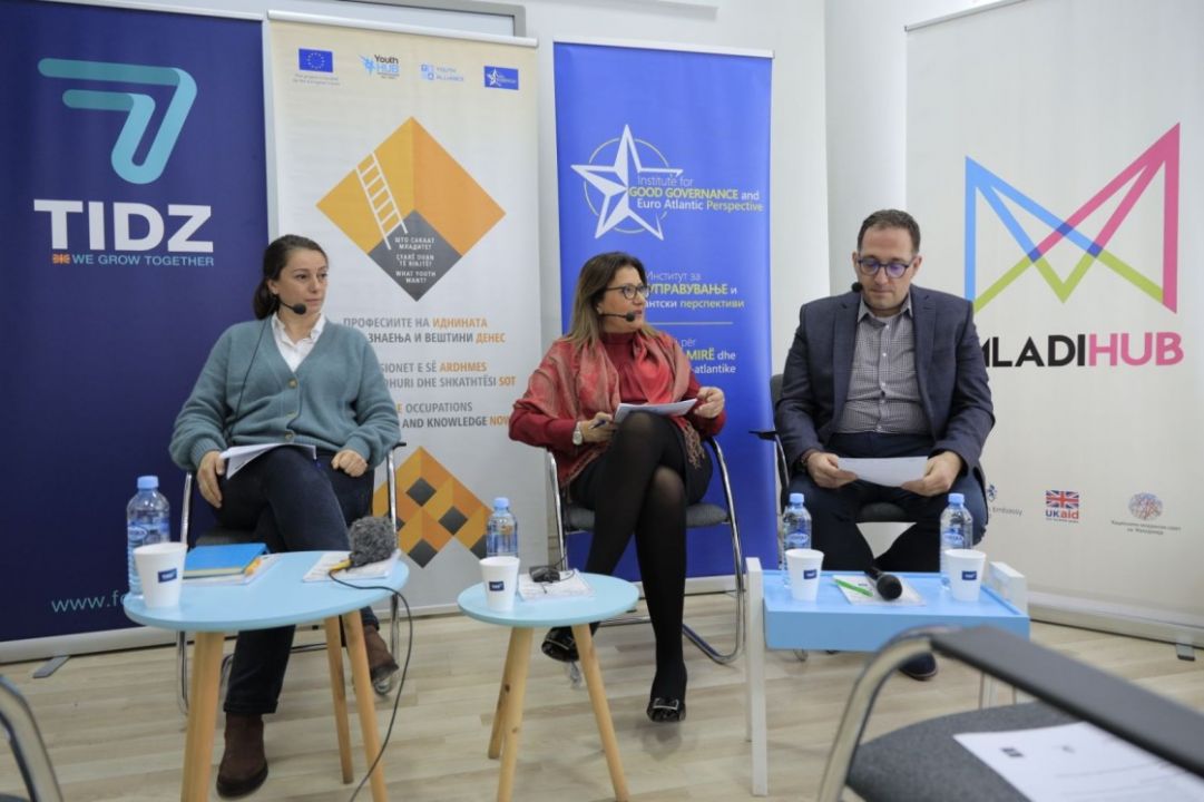 Целта на организирање на денешниот настан беше поттикнување на јавна дебата за тоа дали досегашните мерки за вработување на млади навистина даваат резултати на пазарот на трудот и дали обезбедуваат соодветна поддршка на младите луѓе, особено дали ги адресираат професиите на иднината.