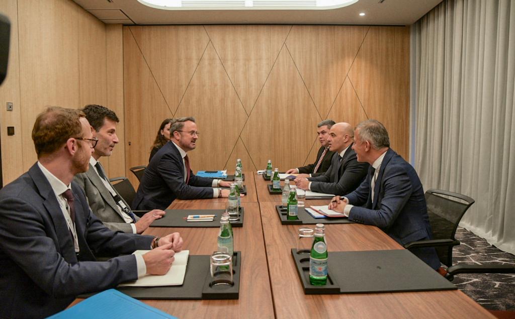 Kryetari i Qeverisë së Republikës së Maqedonisë së Veriut, Dimitar Kovaçevski, i shoqëruar nga zëvendëskryetari i Qeverisë për Çështje Evropiane, Bojan Mariçiq, sot në Tiranë, në margjinat e Samitit BE-Ballkani Perëndimor, u takua me kryeministrin e Luksemburgut, Ksavier Betel.