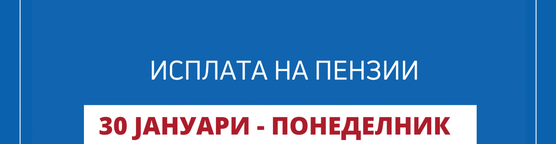 Министерството за труд и социјална политика известува дека на ден 30.01.2023 година (понеделник) започнува етапната исплата на пензиите за месец јануари, кои продолжуваат да се исплатуваат предвремено.
