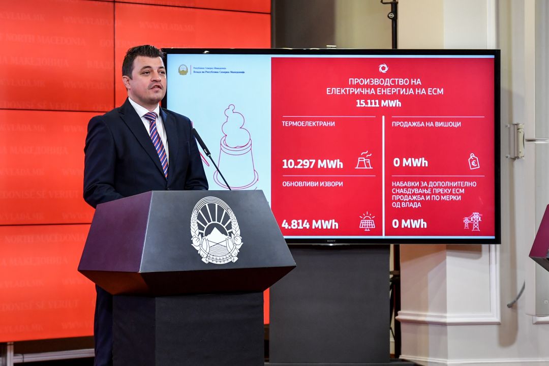 Андонов го презентираше дневниот енергетски биланс, и рече дека во текот на вчерашниот ден, вкупното домашно производство на електрична енергија изнесуваше 15,111 Mwh, од кои во термоелектраните произведени се 10,297 MWh, а од обновливи извори 4,814 MWh.