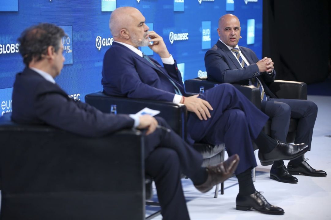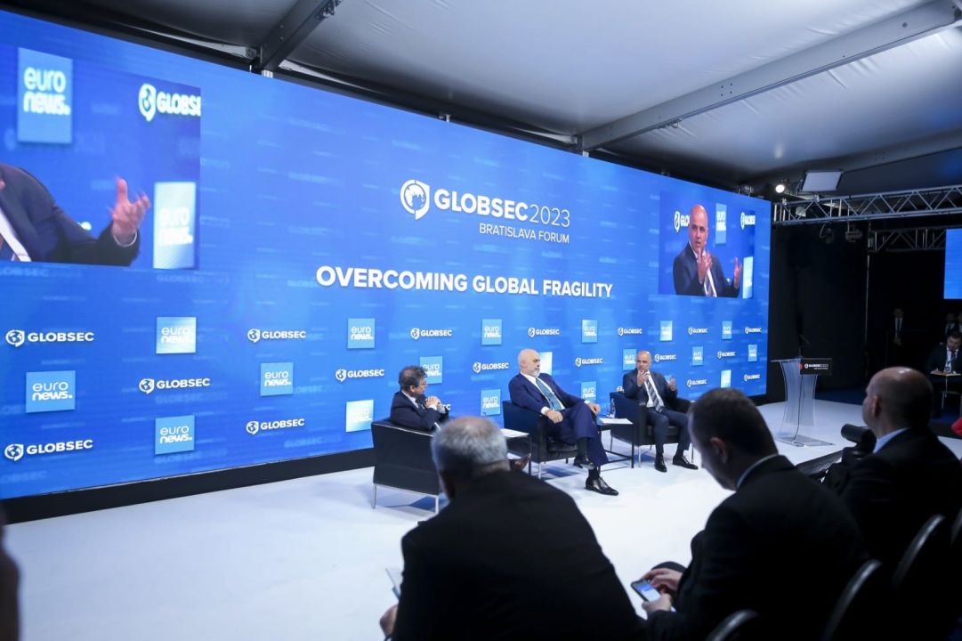Премиерот Димитар Ковачевски, денеска на Форумот на ГЛОБСЕК 2023 во Братислава, се обрати на панел на тема: „Отворени патишта: Балканот се враќа во игра“.