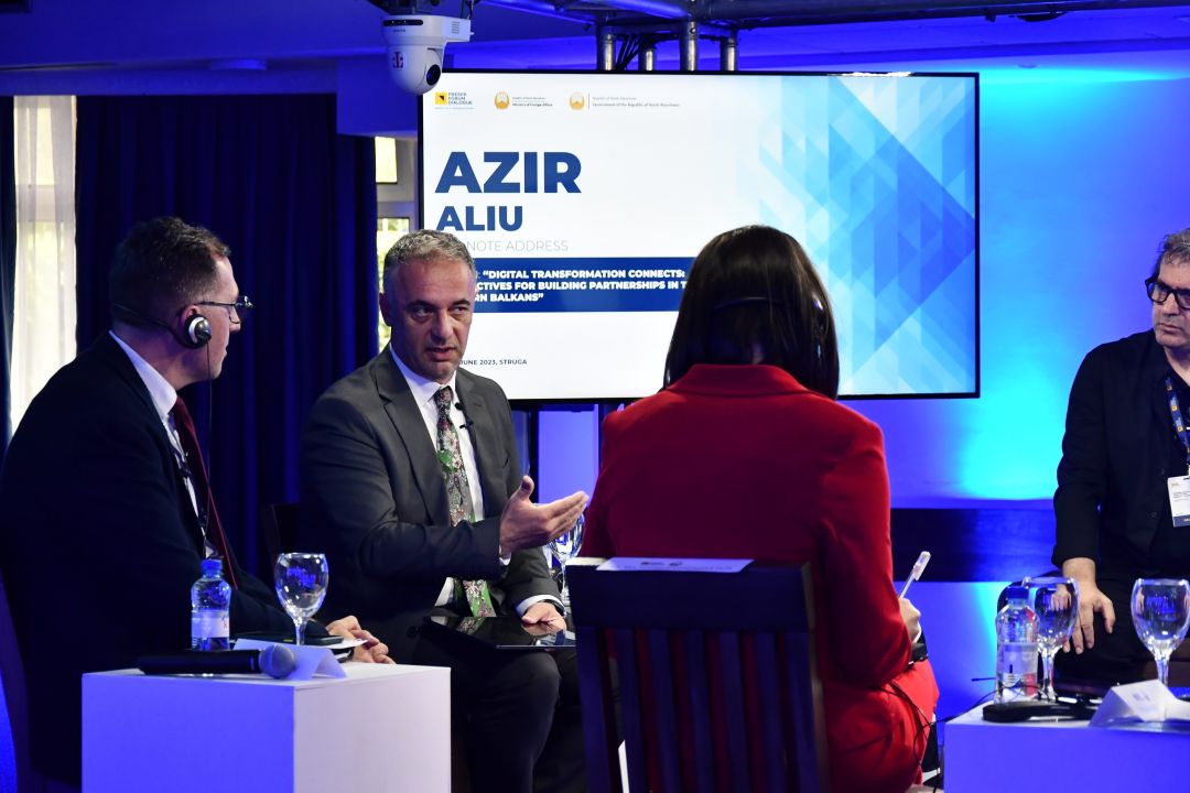 На вториот ден од Преспа форумот за дијалог 2023 во Струга, министерот Азир Алиу ја отвори панел дискусијата насловена како „Дигиталната трансформација поврзува: перспективи за градење партнерства во Западен Балкан“. пришто рече дека технологијата и дигитализацијата нудат и испорачуваат вредности во сите сектори, во сите аспекти од нашиот живот.
