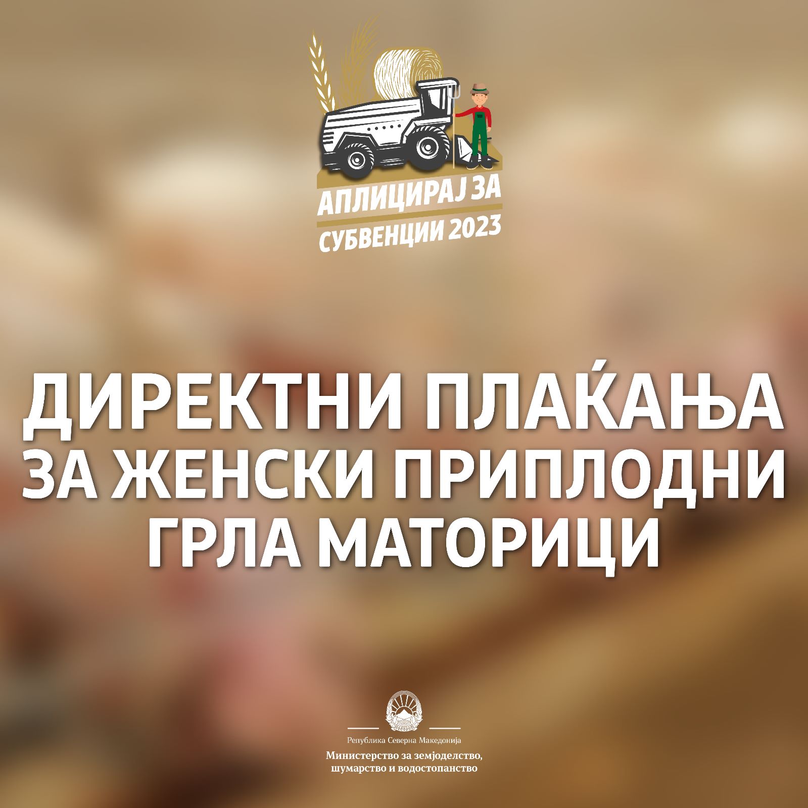 Министерството за земјоделство, шумарство и водостопанство ги повикува земјоделците навремено да аплицираат за директни плаќања за женски приплодни грла- маторици.