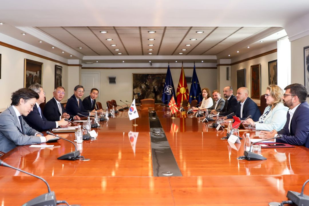 Претседателот на Владата на Република Северна Македонија, Димитар Ковачевски, заедно со заменик-претседателот на Владата задолжен за економски прашања, координација на економските ресори и инвестиции, Фатмир Битиќи и министерката за одбрана Славјанка Петровска, денеска оствари средба со делегација на Hyundai Motor Group, предводена од извршниот директор Еуисун Чунг и јужнокорејскиот амбасадор, Бае Јонинг.