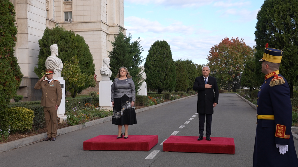 Глобалната и европската безбедносна состојба, активностите за зацврстување на сигурноста на НАТО, потребата од гарантирање на стабилноста на регионот, како и начините за унапредување на одбранбената соработка помеѓу Северна Македонија и Романија беа темите на кои денеска во Букурешт разговараа министерката за одбрана Славјанка Петровска и нејзиниот романски колега, министерот за национална одбрана Ангел Тилвар.