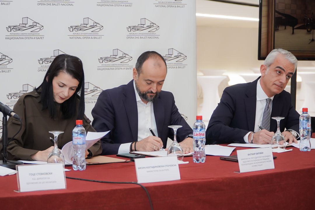 Заменик претседателот на Владата, задолжен за економски прашања, координација на економските ресори и инвестиции, Фатмир Битиќи, заедно со министерката за култура, Бисера Костадиновска-Стојчевска и директорот на ТАВ Констракшн во Северна Македонија, Фатих Кан, потпишаа договор за реконструкција и адаптација на просторот доделен на Националната установа „Џез оркестар на Северна Македонија“, што ќе се реализира преку средства од ТАВ програмата.