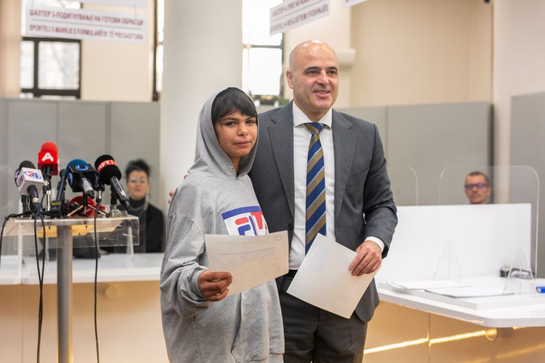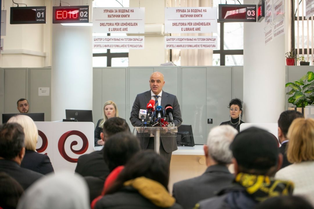 Kryetari i Qeverisë së Republikës së Maqedonisë së Veriut, Dimitar Kovaçevski, sot mbajti fjalim në një manifestim me rastin e dhënies së certifikatave të lindjes për qytetarët që kanë lindur në territorin e vendit tonë, por që nuk janë regjistruar në regjistrat amë dhe nuk kanë certifikata lindjeje.