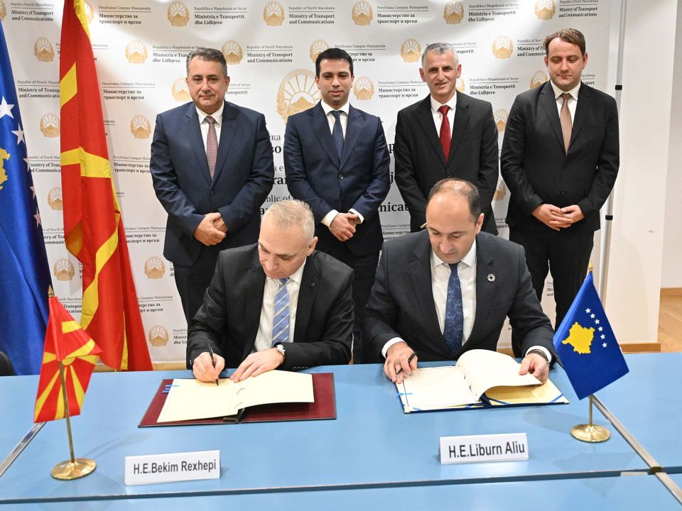 Заменик министерот за транспорт и врски, Беким Реџепи и министерот за животна средина, просторно планирање и инфраструктура на Република Косово, Либурн Алиу, го потпишаа Договорот за кофинансирање за проектирање за изградба на тунелот на новиот патен правец Тетово – Призрен.