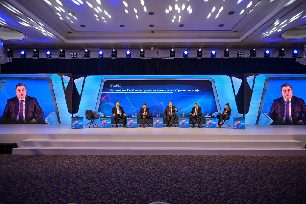 Денес, во рамки на годишната владина конференција се одржа првата панел дискусија : „На патот кон ЕУ:Искористување на можностите за брза интеграција" каде што на оваа тема дискутираа Заменик претседателот на Владата задолжен за економски прашања, Фатмир Битиќи, Заменик претседателот на Владата за европски прашања Бојан Маричиќ, министерот за финансии Фатмир Бесими и претставникот на академската заедница Синиша Наумоски.