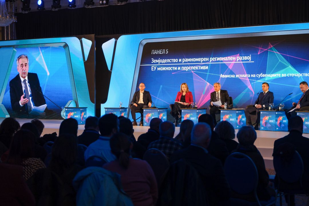 Në kuadër të ditës së dytë të konferencës vjetore "Viti i mundësive evropiane", në panelin e pestë - "Bujqësia dhe zhvillimi i barabartë rajonal - mundësitë dhe perspektivat e BE-së", organizuar nga Qeveria e Republikës së Maqedonisë së Veriut fjalime të tyre mbajtën ministri i Bujqësi, Pylltari dhe Ekonomisë e Ujërave, Ljupço Nikollovski, ministri i Vetëqeverisjes Lokale, Risto Penov, drejtori i Agjencisë për Mbështetje Financiare në Bujqësi dhe Zhvillim Rural, Nikica Baçovski dhe drejtoresha ekzekutive e verërave nga Maqedonia, Elena Mlladenovska.
