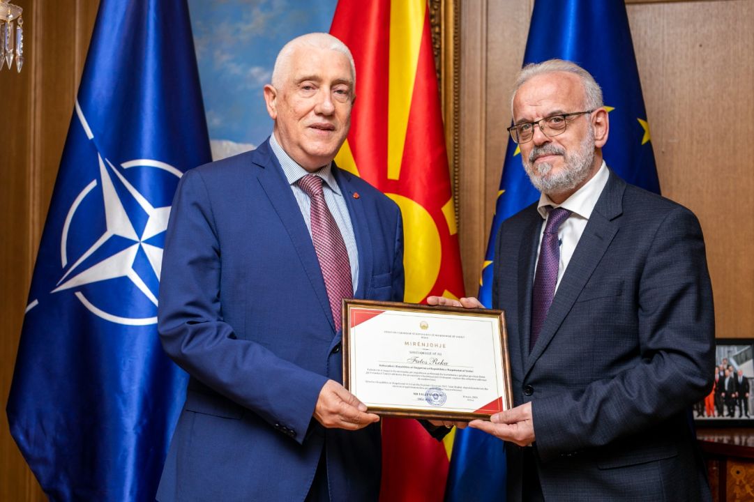 PM Xhaferi, as a token of gratitude, offered Ambassador Reka a recognition of his professional commitment and contribution to the enhancement of cooperation between