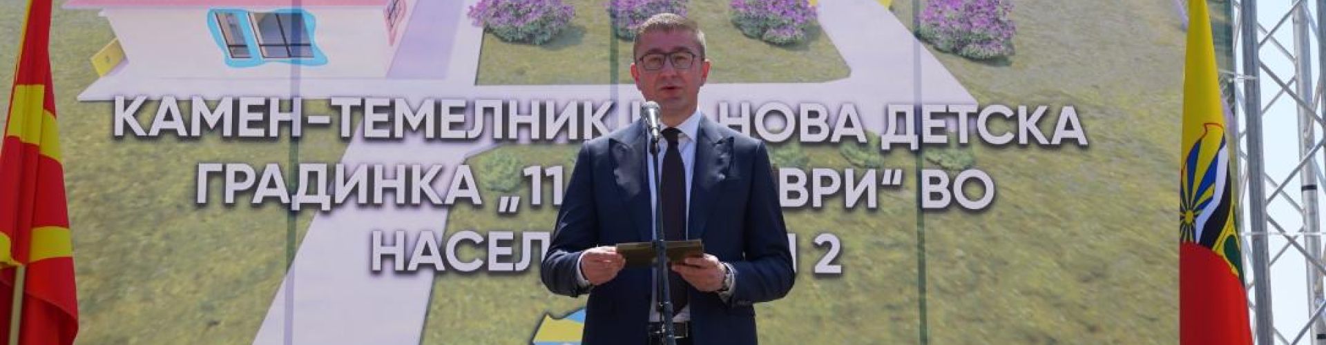 Оваа градинка ви ја ветив пред изборите и еве ме на 8миот ден од новата Влада редиме камен темелник на оваа градинка. Дарко, министерот, министрите и јас остваруваме уште едно ветување. На овој начин создаваме и си стоиме на зборот.
