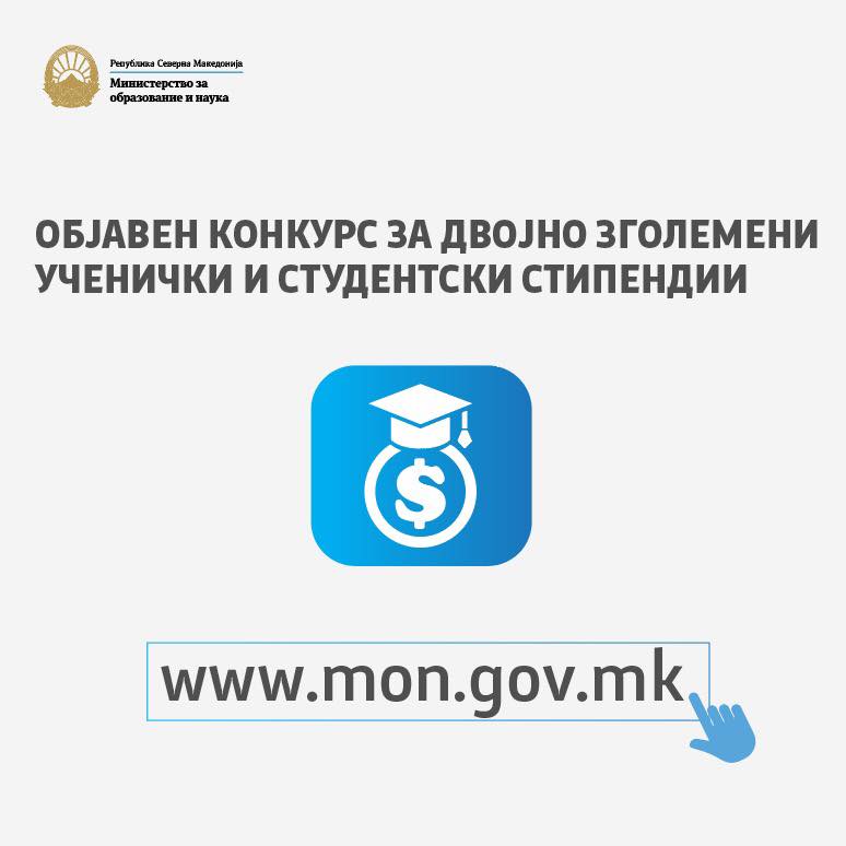 МОН: Објавени се конкурсите за ученички и студентски стипендии за 2021-2022, годинава со зголемени износи и воведени нови категории